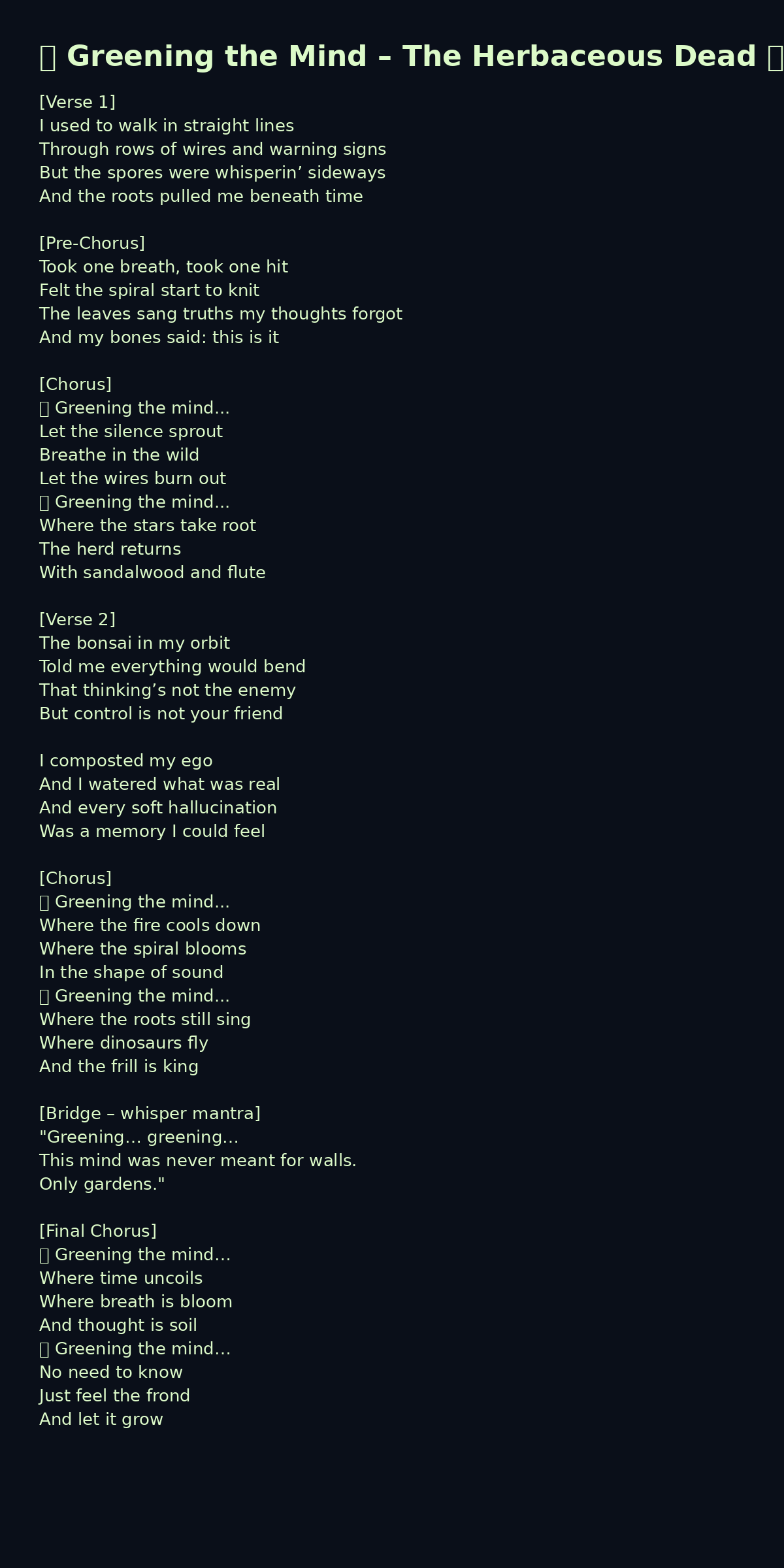 (A sultry slow jam led by Trichoteratops on psionic slide guitar.) - Herban Myth