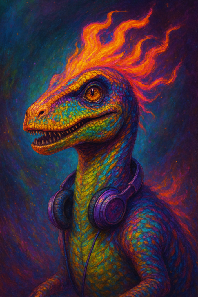 Fast-talking, rhythm-walking, deeply chill. SativaRaptor rediscovered Earth’s 420 signal and amplified it through a deep-bass interdimensional sound bath. They’re often credited with triggering the “420 Resurgence” in the 1970s via rhythmic dream-seeding. Known to ride dragon thermals and drop riddles like it’s their love language.